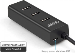 Elegante e compatto, l'HUB in custodia plastica diventerà un ornamento per ogni scrivania, sia a casa che in ufficio. L'hub è alimentato direttamente dall'interfaccia USB e supporta la tecnologia di ricarica BC1.2, che regola intelligentemente la tensione e si assicura che l'alimentazione venga interrotta dopo la carica della batteria. Questo prolunga la durata delle batterie caricate. Inoltre, l'hub è dotato di una porta micro USB per alimentazione aggiuntiva, consentendo di alimentare anche i dispositivi più esigenti dal punto di vista energetico.