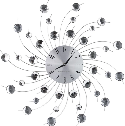 L'orologio da parete Geneva è la scelta ideale per chi cerca una decorazione elegante e stilosa per la propria casa o ufficio. La cassa dell'orologio è decorata con cristalli di diverse forme, creando l'impressione di "diamanti" scintillanti sulla vostra parete.