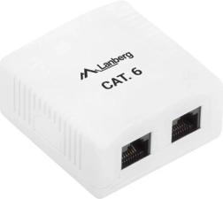 Questa presa di Lanberg offre due porte RJ-45 non schermate di categoria 6 per una connessione internet veloce e stabile.