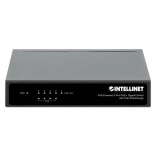 Compatto switch gigabit a 5 porte INTELLINET con funzione di PoE passthrough che alimenta fino a quattro dispositivi e funziona tramite PoE oppure con alimentatore AC. Offre un budget PoE totale fino a 68 W, supporto IEEE 802.3af/at, tecnologia a risparmio energetico Green Ethernet ed estensione della portata PoE fino a 200 m.