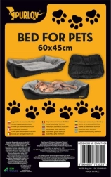 La cuccia Purlov nelle dimensioni 60 × 45 cm (esterne 65 × 50 × 13 cm) è progettata per un sonno confortevole di razze piccole e medio-piccole. Il morbido interno grigio e i resistenti lati neri garantiscono comfort, supporto e lunga durata. Grazie all'accesso ribassato, la cuccia è facilmente fruibile anche da cuccioli e animali anziani.