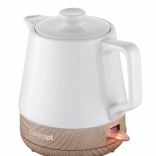 Elegante bollitore elettrico in ceramica da 1 litro che combina ceramica elegante con texture effetto legno. Offre lunga conservazione del calore, manutenzione facile e funzionamento sicuro grazie allo spegnimento automatico e alla protezione contro il funzionamento a secco. La base girevole a 360° e la resistenza nascosta semplificano l’uso quotidiano.