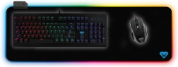 Il tappetino Cobra Pro con dimensioni 800x305 mm è realizzato in tessuto gommato antiscivolo, che aderisce in modo affidabile al tavolo. È adatto all’uso con mouse e tastiera e assicura un tracciamento preciso del cursore, fondamentale per ogni giocatore. L’illuminazione RGB si controlla con un unico pulsante e offre diverse modalità di illuminazione e cicli di colore.