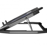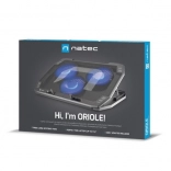 NATEC Oriole è una base di raffreddamento affidabile progettata per lavoro e gioco. Tre ventole silenziose da 120 mm riducono efficacemente le temperature e, grazie alla regolazione della velocità a 3 livelli, puoi passare con facilità tra massime prestazioni e funzionamento silenzioso. La griglia perforata in metallo migliora il flusso d'aria e aumenta la robustezza dell'intera struttura.