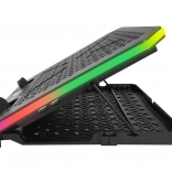 Mantieni il tuo notebook al fresco e in perfette condizioni con il raffreddatore da gaming Galerne. Offre illuminazione RGB/LED con 10 modalità, funzionamento silenzioso 17–20 dBA, 6 velocità delle ventole e 6 angoli di inclinazione regolabili per un uso ergonomico. Alimentazione tramite USB, nessuna installazione, compatibile con notebook fino a 19".