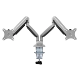 Il doppio braccio per monitor consente di personalizzare altezza, inclinazione e rotazione di entrambi gli schermi per ottenere l’angolo di visione ideale. La struttura robusta garantisce stabilità, mentre il morsetto da scrivania fa risparmiare prezioso spazio sul piano di lavoro.