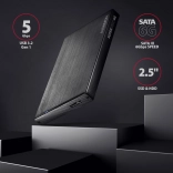 La custodia AXAGON EE25-XA6 ALINEbox è progettata per dischi rigidi SATA da 2,5" o SSD con supporto interfaccia USB 3.2 Gen 1. Grazie al supporto UASP e alla funzione TRIM, protegge e ottimizza le prestazioni degli SSD a lungo termine. Non solo manterrai uno stile elegante grazie al design resistente ai graffi, ma otterrai anche protezione affidabile e raffreddamento grazie alla costruzione in alluminio.