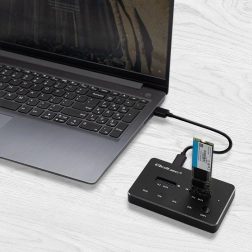 Grazie all’interfaccia USB 3.1 Gen 1 con protocollo UASP raggiunge velocità fino a 6 Gb/s e consente un lavoro fluido anche con file di grandi dimensioni. Per la massima comodità non manca la clonazione offline senza computer: con la pressione del pulsante COPY avvii la copia dall’unità A all’unità B, mentre le spie LED (25/50/75/100%) indicano chiaramente l’avanzamento. L’installazione è driver‑free: basta collegare e usare Plug & Play.