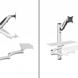 Il braccio con molla a gas consente inclinazione di 45°, rotazione di 180° e piena rotazione VESA a 360° per un rapido passaggio in verticale.