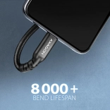 Focus sulla robustezza: treccia in nylon, gusci in alluminio, connettori nichelati e pin dorati minimizzano l’ossidazione e assicurano una connessione stabile. I conduttori di potenza 22AWG accelerano la ricarica, quelli dati 32AWG con schermatura di qualità garantiscono una trasmissione impeccabile. Il cavo sopporta oltre 8000 piegature e mantiene un’elevata flessibilità grazie all’isolamento in TPE.