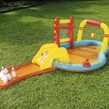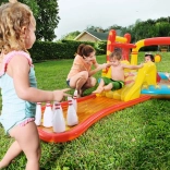 - Divertimento multifunzionale – scivolo, birilli, anelli, canestro, elemento spruzzante.