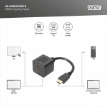 Splitter HDMI passivo è la soluzione ideale per collegare due televisori o monitor a un unico connettore HDMI di computer o notebook, supportando la qualità Full HD (1080p). Non è possibile l'uso simultaneo di entrambi i dispositivi.