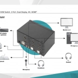 Il dispositivo supporta UHD 4K/30 Hz (3840 × 2160) con campionamento YUV 4:4:4 e offre prestazioni stabili in un robusto chassis metallico. Indicatori LED e OSD mostrano lo stato del PC attivo e delle porte. Grazie al plug & play funziona senza installare driver ed è ideale per uffici, postazioni domestiche e studi.
