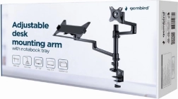 Il supporto da scrivania regolabile GEMBIRD combina un braccio per monitor e un piano d'appoggio per notebook, offrendo una soluzione ergonomica e salvaspazio per le postazioni moderne. Le braccia scorrono, si inclinano e ruotano con fluidità, così potete impostare facilmente altezza e distanza ideali riducendo l'affaticamento di collo e occhi.