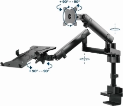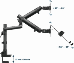 Braccio regolabile di alta qualità per monitor, che si fissa direttamente alla vostra scrivania e permette un perfetto posizionamento del vostro monitor e notebook. Godetevi un facile e ergonomico regolamento che riduce il carico di lavoro e migliora il comfort generale di lavoro.