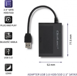L'adattatore USB 3.0 del marchio Qoltec è realizzato con un'enfasi sulla qualità e sulla funzionalità. Il dispositivo è dotato di una porta SATA 3.0 situata all'interno di una custodia protettiva, che stabilizza il disco collegato e lo protegge da influenze esterne.