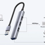 Utilizza il Unitek USB hub 4v1 e dimentica la mancanza di porte USB. Offre una porta USB 3.0 veloce con velocità di 5 Gbps, ideale per dischi esterni, e tre porte USB 2.0 per periferiche meno esigenti.
