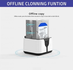 Questa stazione offre clonazione automatica dei dati sia via USB che in modalità offline. Basta inserire i dischi nelle porte appropriate, accendere l'alimentazione e avviare il processo di clonazione con un solo tocco del pulsante COPY.