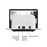 La nostra stazione di docking da tavolo offre la possibilità di collegare due dischi (SSD o HDD) contemporaneamente, supportando dimensioni di 2.5'' e 3.5''. Grazie ai piedini in gomma, è garantita la stabilità del dispositivo. L'installazione è semplice grazie alla funzione Plug & Play, quindi non sono necessarie particolari competenze tecniche.