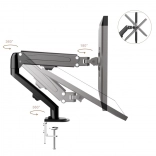 Supporto da scrivania universale per monitor 13–27" con portata fino a 8 kg per schermi LCD/LED. Offre regolazione di inclinazione, rotazione e altezza per una migliore ergonomia e comfort. Le asole passacavo integrate mantengono la postazione ordinata e organizzata. Compatibile con gli standard VESA 75x75 e 100x100 e con un’ampia gamma di marchi.