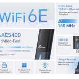 Con questa potente scheda di rete USB a tre bande, puoi utilizzare le bande da 2.4 GHz, 5 GHz e 6 GHz, che ti consentono di avere una connessione wireless flessibile. Le antenne ad alto guadagno insieme alla tecnologia Beamforming ampliano il tuo raggio d'azione WiFi, consentendoti di connetterti da qualsiasi punto della tua casa. Bassa latenza nei giochi è raggiunta grazie alle tecnologie OFDMA e MU-MIMO, che assicurano una connessione massimamente efficiente al tuo computer.