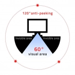 Con l'uso della tecnologia avanzata delle micro-persiane, garantisce leggibilità dalla vista diretta fino a un angolo di 60 gradi, mentre le visuali laterali risultano completamente illeggibili. Alla visuale di 30 gradi, l'immagine si scurisce, garantendo la massima privacy.