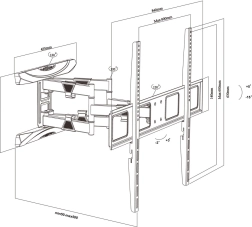 Il supporto da parete universale è compatibile con televisori di marchi importanti come Sony, LG, Samsung, Philips, Sharp, Panasonic e molti altri. Progettato per televisori LCD, LED e OLED fino a 100 pollici, purché rispettino lo standard VESA e non superino il peso massimo. Supporto dello standard VESA: Il supporto supporta diverse dimensioni: 100x200, 200x200, 200x300 fino a 800x600 mm. Il lungo braccio doppio consente ampie possibilità di rotazione dello schermo e livellamento +3/-3° dopo il montaggio.
