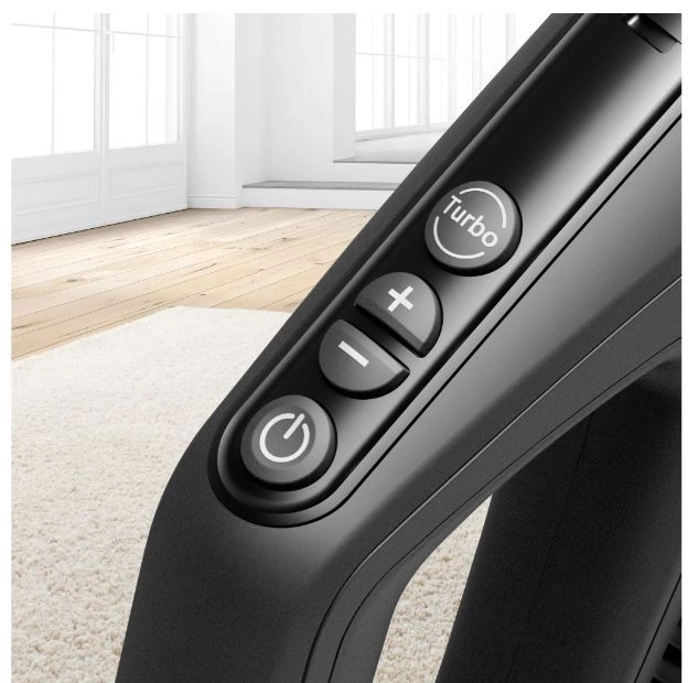 Non devi più piegarti per impostare la potenza di aspirazione. Il telecomando di potenza consente di controllare tutte le impostazioni direttamente dall’impugnatura. Con un solo tocco puoi passare alla modalità turbo, standby o al livello di potenza desiderato. Ora puoi goderti la massima potenza di aspirazione per tutti i tipi di pavimento.