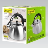 Il bollitore Maestro è dotato di un manico antiscottatura per un utilizzo comodo e sicuro. Il pratico fischietto segnala il raggiungimento dell'ebollizione. Il coperchio rimovibile facilita il riempimento d'acqua e la pulizia.