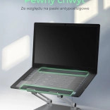 Le strisce in silicone sul bordo superiore e inferiore della piattaforma impediscono lo scivolamento anche con inclinazioni più pronunciate. Inoltre, la struttura perforata favorisce un miglior smaltimento del calore, mantenendo il notebook ben raffreddato anche durante l’uso intensivo.
