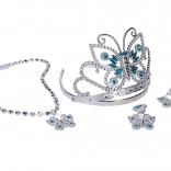 Incanta la tua piccola vanitosa con un magico set di gioielli da principessa. La confezione include corona, collana, anello e orecchini in colore rosa o viola. Ideale come accessorio per un costume di carnevale o per giocare alla principessa. Sono disponibili motivi a farfalle o coroncine.