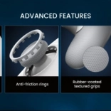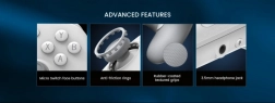 Le impugnature testurizzate e la forma bilanciata offrono comfort anche durante lunghe sessioni. Il retro è progettato per una presa stabile e un controllo preciso.