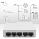 Il collegamento è semplice: collega i dispositivi alle relative porte RJ45, collega una porta al router o al modem e verifica l'attività tramite i LED. In pochi passaggi la tua rete è pronta all'uso.