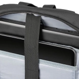 Per il comfort in movimento non mancano schienale ergonomico e ventilato per un migliore flusso d'aria, spallacci regolabili e morbidamente imbottiti e una pratica fascia trolley per un facile fissaggio alla maniglia estraibile del bagaglio. Lo zaino è quindi la scelta perfetta per ufficio, meeting e viaggi di lavoro.
