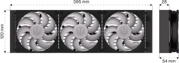 Il merito va alle ventole Fluctus 120 PWM ARGB, responsabili del flusso d’aria attraverso il radiatore, e lo fanno bene quanto la nostra premiata Fluctus 120 PWM. Le loro pale sono state profilate per avvolgere con la massima precisione la fitta alettatura del radiatore. Abbiamo una teoria: se fossero abbastanza grandi, scatenerebbero una nuova era glaciale. La riduzione delle temperature è esemplare. Inoltre, ognuna termina con un bordo ondulato che riduce la percezione del rumore sgradevole (l’ottimizzazione psicoacustica delle ventole Fluctus è brevettata). Benvenuto nel lato oscuro e silenzioso delle prestazioni.