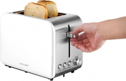 Il tostapane Concept Sinfonia è ideale per chi desidera preparare rapidamente deliziosi toast fatti in casa e pane croccante senza utilizzo di olio. Il tostapane ha due fessure per tostatura e un timer elettronico con sei livelli di tostatura. Grazie alle larghe fessure, è semplice tostare anche le fette più spesse. L'apparecchio offre anche funzionalità di scongelamento, riscaldamento e interruzione immediata della tostatura. Dopo il tempo impostato, i toast pronti vengono espulsi automaticamente e il dispositivo si spegne.