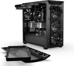 Le tre ventole preinstallate Pure Wings 3 140 mm PWM forniscono un elevato flusso d’aria con bassa rumorosità: anche a regimi più alti il funzionamento rimane raffinato. Non mancano installazione senza attrezzi per unità, gestione dei cavi studiata e filtro antipolvere rimovibile per una manutenzione semplice.
