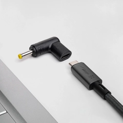 Collega semplicemente l’adattatore al caricatore USB‑C e alimenta il notebook compatibile, ad esempio alcuni modelli LENOVO con connettore 4.0 × 1.7 mm. Prima dell’uso assicurati che il tuo alimentatore disponga di potenza sufficiente per il dispositivo in questione: l’adattatore non aumenta la potenza erogata.