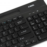 La tastiera wireless iBOX Kallisto offre una soluzione multifunzionale per i tuoi dispositivi. Offre connessioni sia tramite l'interfaccia wireless USB 2,4 GHz sia tramite Bluetooth, rendendola una scelta universale per computer e dispositivi mobili. Uno speciale vano permette di posizionare comodamente il dispositivo mobile davanti all'utente e la funzione di commutazione tra dispositivi associati facilita il lavoro in ambienti diversi.