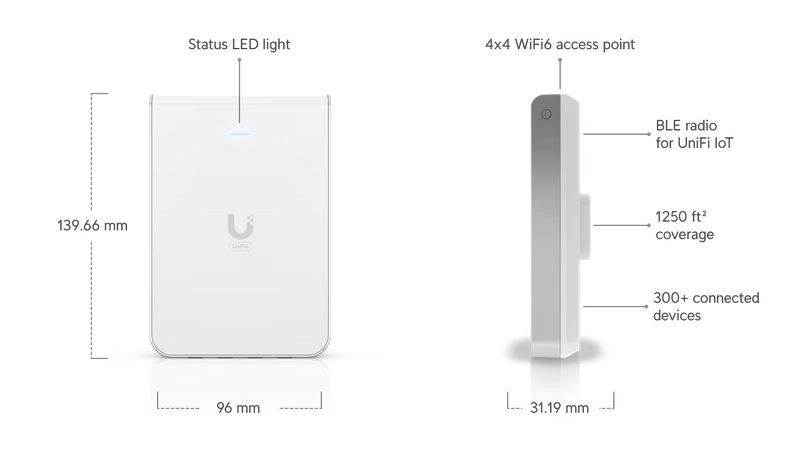 Punto di accesso Unifi 6 In-Wall è la soluzione ideale per garantire una connessione Wi‑Fi veloce e affidabile negli interni. Grazie al suo elegante design bianco, si adatta facilmente a qualsiasi ambiente e offre velocità fino a 573,5 Mbit/s. Il supporto PoE semplifica l’installazione e l’integrazione.
