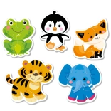 La confezione contiene 5 puzzle con sagome di animali