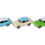 L'iconico modello dell'auto Trabant del marchio Welly in scala 1:60 farà felici piccoli e grandi collezionisti. Struttura in metallo, porte apribili, interni dettagliati e ruote libere garantiscono un'ottima esperienza di gioco e di esposizione. Lunghezza circa 7 cm, assortimento di colori, adatto dai 3 anni.