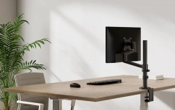 Il braccio è compatibile con gli standard VESA 75x75 mm e 100x100 mm e offre un'installazione facile grazie al meccanismo di bloccaggio sulla scrivania. Inoltre, l'imballaggio è 100% senza plastica, sostenendo la sostenibilità e la protezione dell'ambiente.
