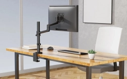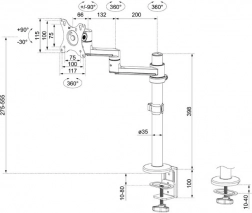 Scoprite la soluzione perfetta per la vostra scrivania con il braccio per monitor completamente regolabile. Questo braccio è ideale per monitor con diagonale da 17" a 27" e supporta un peso massimo di 8 kg. Grazie a una vasta gamma di regolazioni, incluse inclinazione da -30° a +90°, rotazione a 360° e orientamento da -90° a +90°, potrete adattare la posizione del monitor alle vostre esigenze.