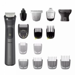 Rifinitore universale per viso, capelli e corpo con fino a 15 strumenti in uno, ideale per rifiniture precise e styling completo. Offre 22 impostazioni di lunghezza 0,5–16 mm con passo fine da 0,2 mm, lame in acciaio inox senza necessità di olio, adattamento intelligente della potenza in base alla densità della barba e design Wet & Dry 100% impermeabile. Fino a 120 minuti di utilizzo senza fili e ricarica rapida di 5 minuti per semplificare la cura in qualsiasi momento.