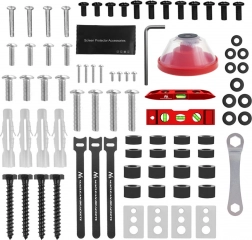 Nel pacchetto sono inclusi anche accessori di montaggio aggiuntivi come livella compatta per un'installazione precisa, raccoglitore di polvere per trapano, panni di pulizia e fascette per cavi per un'organizzazione ordinata dei cavi.