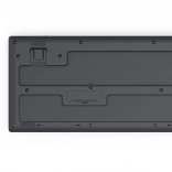 La tastiera è dotata di gambe pieghevoli per regolare l'angolo, mentre il mouse ha una forma simmetrica e piedini in polimero.