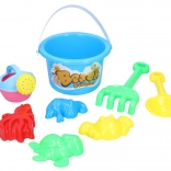 Secchiello con immagine, paletta, annaffiatoio, rastrellino, 4 formine