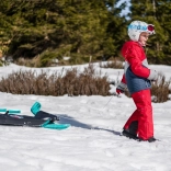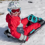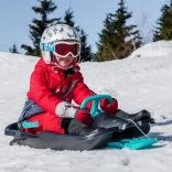 La sicurezza è al primo posto: freni efficaci aiutano a fermarsi rapidamente, il concetto monosci stabilizza la corsa e la zona di deformazione frontale attenua gli urti. La pratica fune di traino facilita il trasporto in salita, così bambini e genitori possono godersi più discese senza fatica.