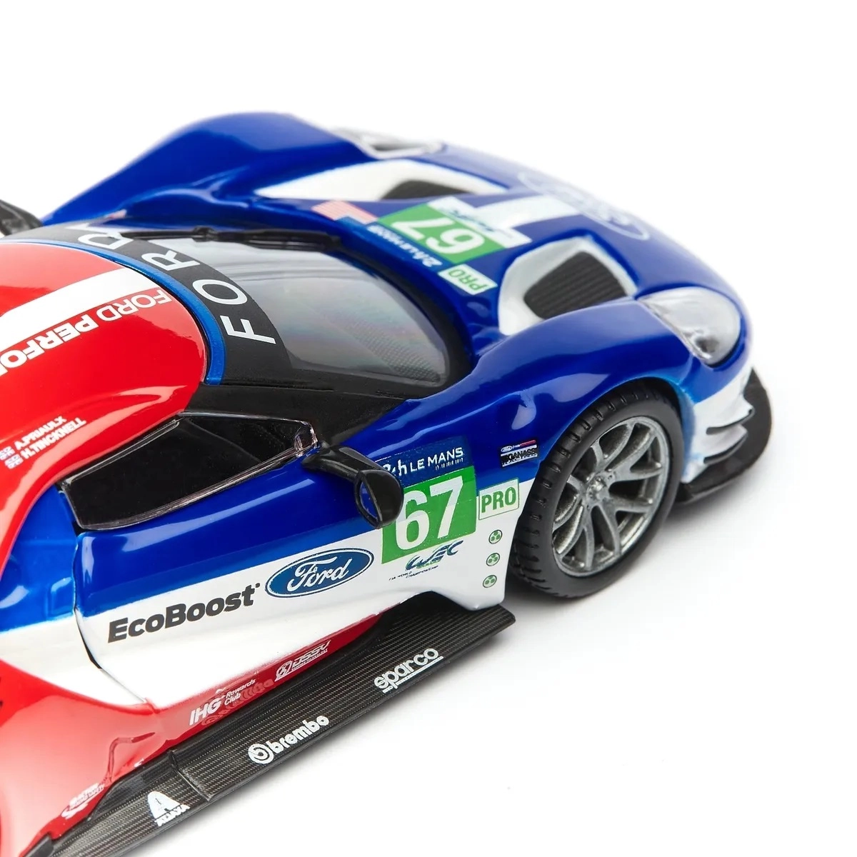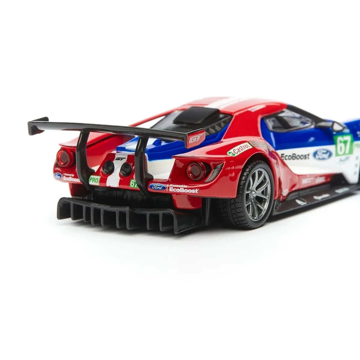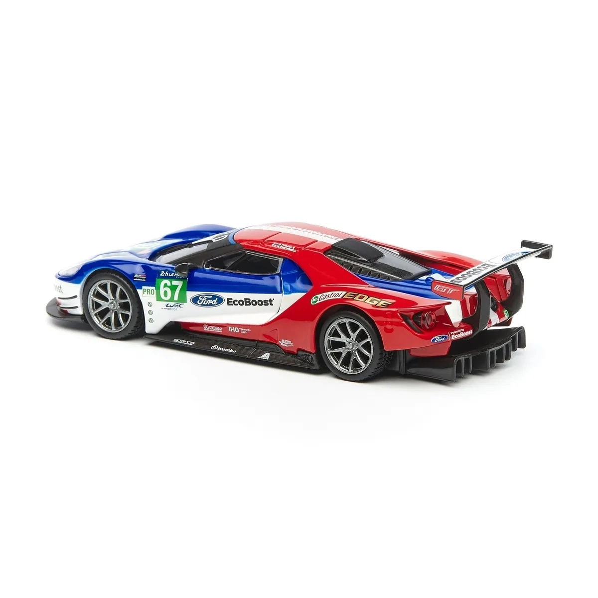 Le stampe originali FORD, EcoBoost e il numero di gara 67 donano al modello un carattere racing che risalta in vetrina e in foto.